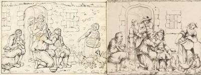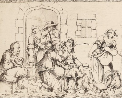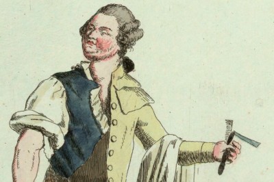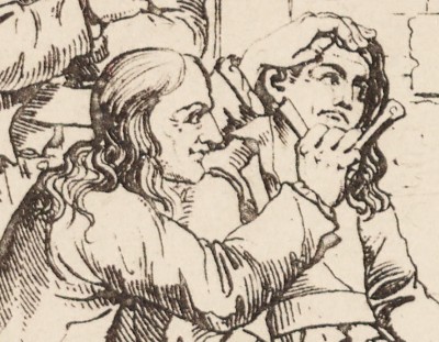 „Chez le barbier” „У цирюльника” Взглянем поближе: А теперь - сюрприз. Как оказалось, чуть выше я показал эскиз карандашом этой гравюры и если сравнить их, хорошо видна большая разница в деталях. На гравюре все четко, кроме того, в центре у женщины появилось ведро, рядом с клиентом уже есть шляпа, справа петушок повернулся и еще многое другое: С 2013 г. с кайфом бреюсь опасной бритвой пять раз в неделю, в три прохода.