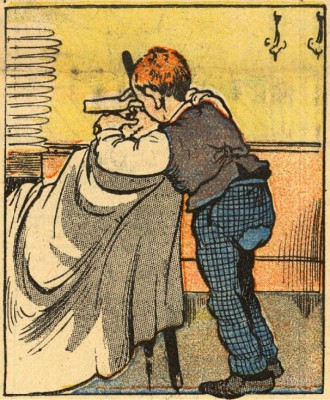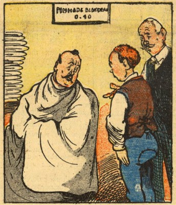 Опасная бритва в искусстве (картины, рисунки, фото, тату)Комикс из французской газеты „Le Petit Comtois”, 1904 г.