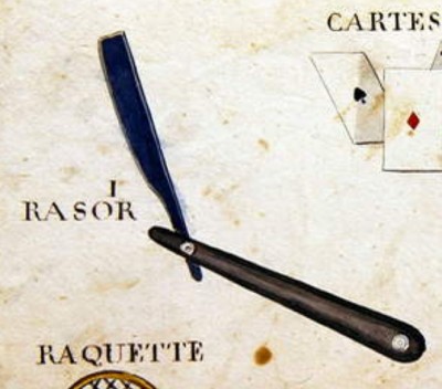 „Messieurs du rasoir” „Мастера бритвы”, 1836 г. Фигаро: Ангелочек с бритвой. На гербе тоже есть бритва: С 2013 г. с кайфом бреюсь опасной бритвой пять раз в неделю, в три прохода.