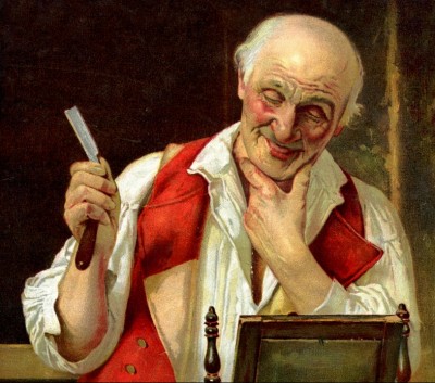 „Мужчина викторианской эпохи бреется опасной бритвой”, 1893 г.