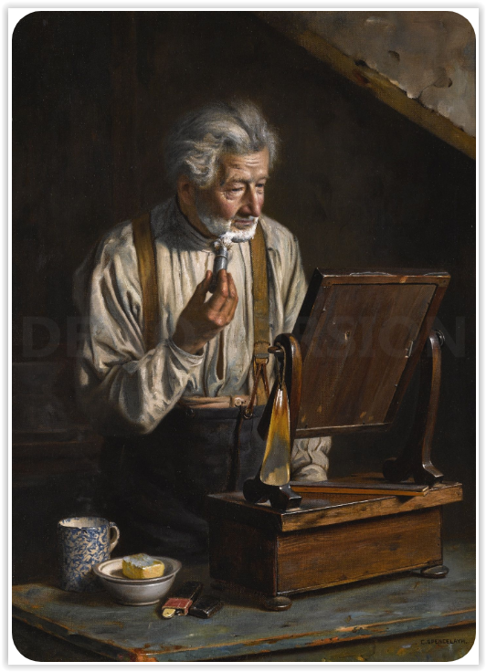 „Man shaving” - „Бреющийся мужчина” 1886 г. Джон Сингер Сарджент (англ. John Singer Sargent, 12 января 1856, Флоренция - 15 апреля 1925, Лондон) — американский художник, один из наиболее успешных живописцев периода Belle Époque. „Shaving in the open” - „ Бритье на открытом воздухе” 1916 г.