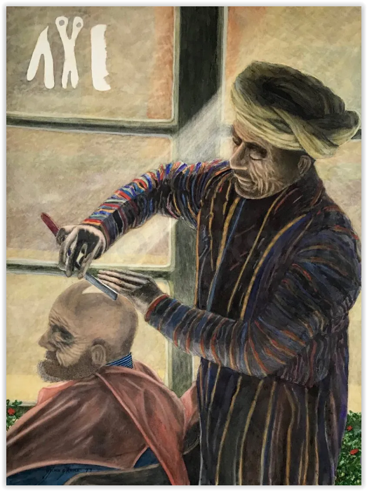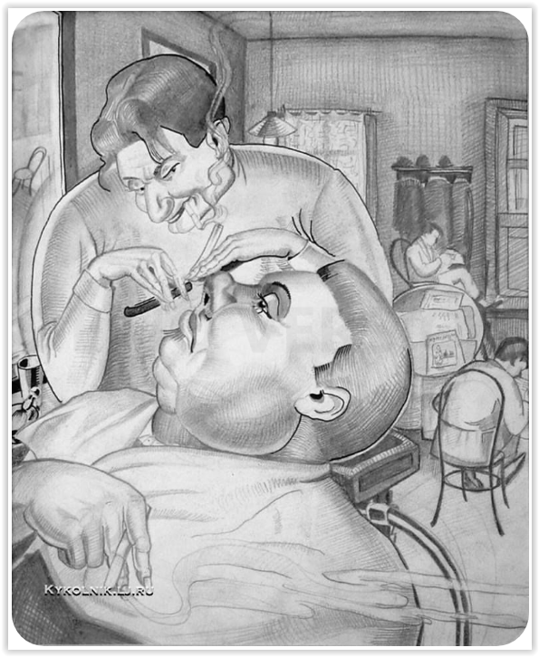 „An Ottoman barber” „Османский брадобрей” Жибинов Алексей Петрович (1905-1955) С именем Жибинова связаны основные этапы становления и развития сибирской живописной школы. Один из самых ярких, талантливых живописцев восточной Сибири, творчество которого выходит за пределы региона. „В парикмахерской”, 1920 (Обратите внимания, парикмахерша курить и клиент тоже курить). С 2013 г. с кайфом бреюсь опасной бритвой пять раз в неделю, в три прохода.