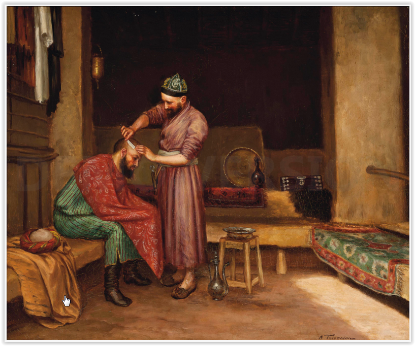 Опасная бритва в искусстве (картины, рисунки, фото, тату)Arshag Tolvanian (1880-1969) Аршаг Толванян был армянским художником. Работы Аршага Толваняна неоднократно выставлялись на аукционе. В1998 года рекордная цена на этого художника на аукционе составляет 5 946 долларов США за „Османского брадобрея”, проданного на Christie's.