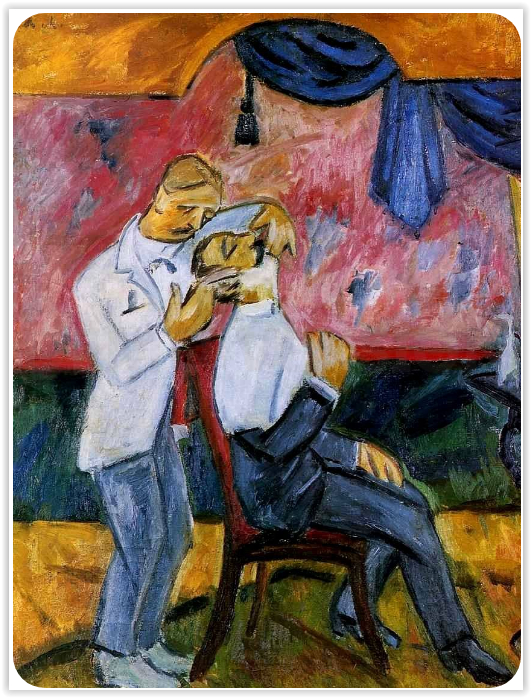 Опасная бритва в искусстве (картины, рисунки, фото, тату)Ещё картины Давида Бурлюка со сценами в парикмахерской.