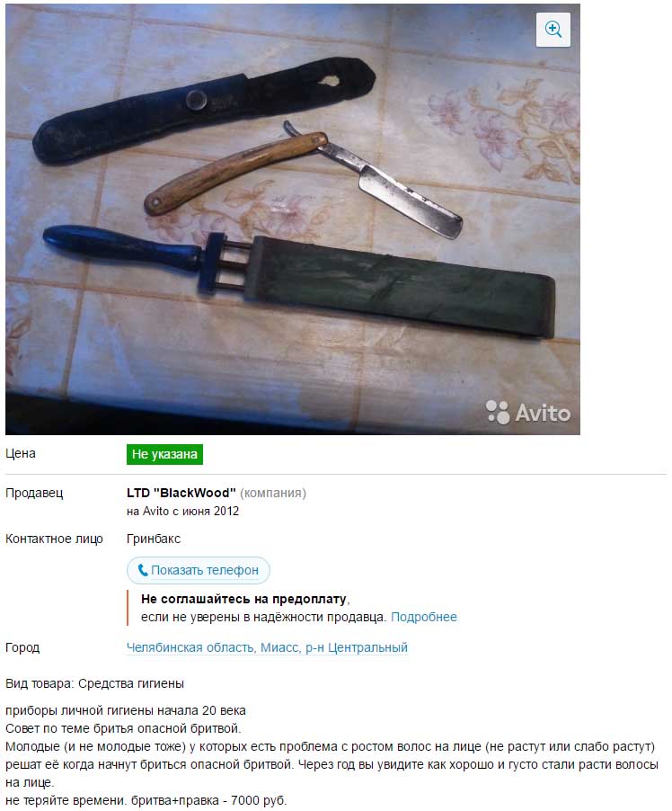 Re: Аукционы: плагиат, развод и "великолепные" описанияБритве до бритья еще тернистый путь пройти надо, ремень на правке или под замену или под пасту, но тоже после манипуляций, а цена как будто все готово к использованию. Мдя печаль.
