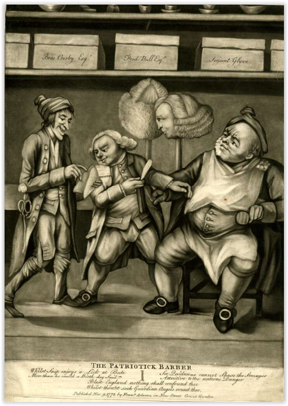 „The barber's shop”, „Цирюльня” Adams Francis Edward (1754-1777) Адамс Фрэнсис Эдвард был английским гравером и карикатуристом. Он получил премию Общества художеств в 1760 году. „The Patriotick Barber” 1772 г. „Патриотический цирюльник” С 2013 г. с кайфом бреюсь опасной бритвой пять раз в неделю, в три прохода.