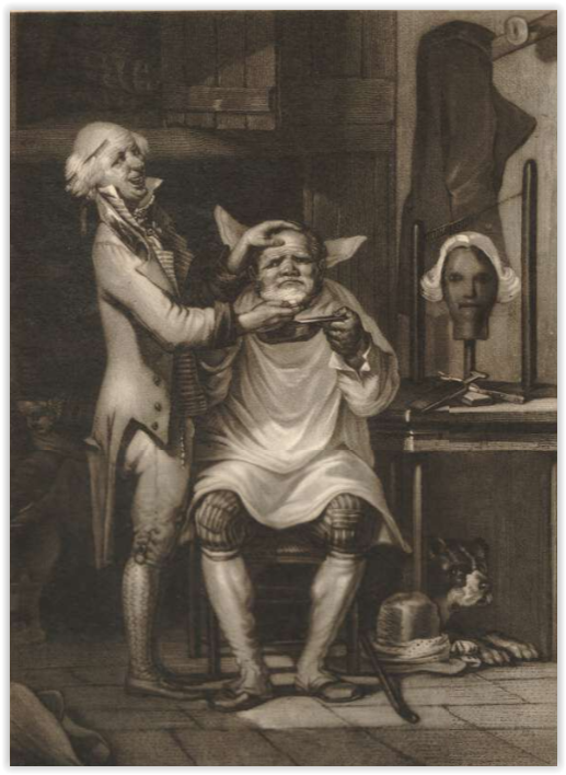 „Le barbier de Village” „Деревенский цирюльник”, начало XIX века Nicolas Toussaint Charlet (1792-1845) Николя Туссен Шарле - французский живописец, гравер и литограф. „Le Perruquier du Village” ок. 1835 г. „Деревенский парикмахер” С 2013 г. с кайфом бреюсь опасной бритвой пять раз в неделю, в три прохода.