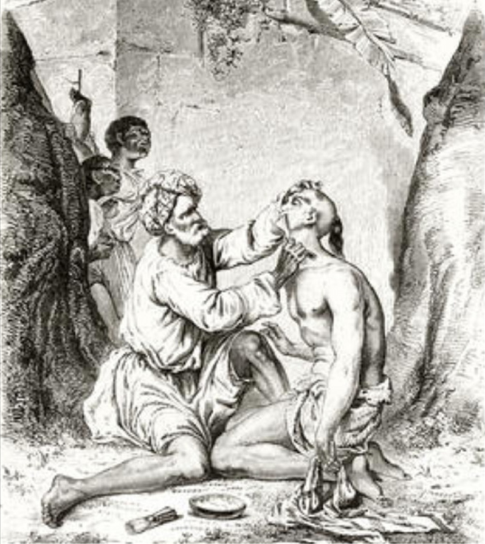 „Barbers outdoors” „Цирюльники на открытом воздухе” Сново John Nixon (1755-1818), Джон Никсон „Feeling” 1784 г., „Ощущение” После бритья, женщина ухаживает за раной на лбу клиента. С 2013 г. с кайфом бреюсь опасной бритвой пять раз в неделю, в три прохода.