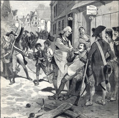 Я просто долго ищу картинки с разных источников. Иногда мне везет и в течение одного-двух часов удается найти пару штук, а иногда - ничего нового. Вот, сегодня нашел еще одну. Gustave DuCourdray (1838-1906) Гюстав ДюКурдре - французский историк и педагог. В 1885 г. вышла его книга „Cent Récits d'Histoire Contemporaine” (Сто рассказов новейшей истории). Вот иллюстрации из этой книги. Художник неизвестный. „Bombardment of Lille 1792 in a French-Austrian War” „Бомбардировка города Лилля 1792 года во время франко-австрийской войны”. Цирюльник Маес использует кусок бомбы в качестве миски для пены, чтобы побрить четырнадцать граждан посреди улицы из щебня. Про цирюльника Маес я уже показывал картин: viewtopic.php?p=232208#p232208