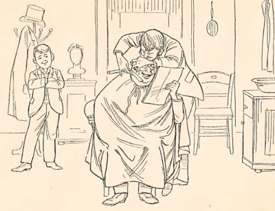 „Mr. Meyer in the barber shop” „Мистер Мейер в цирюльне”