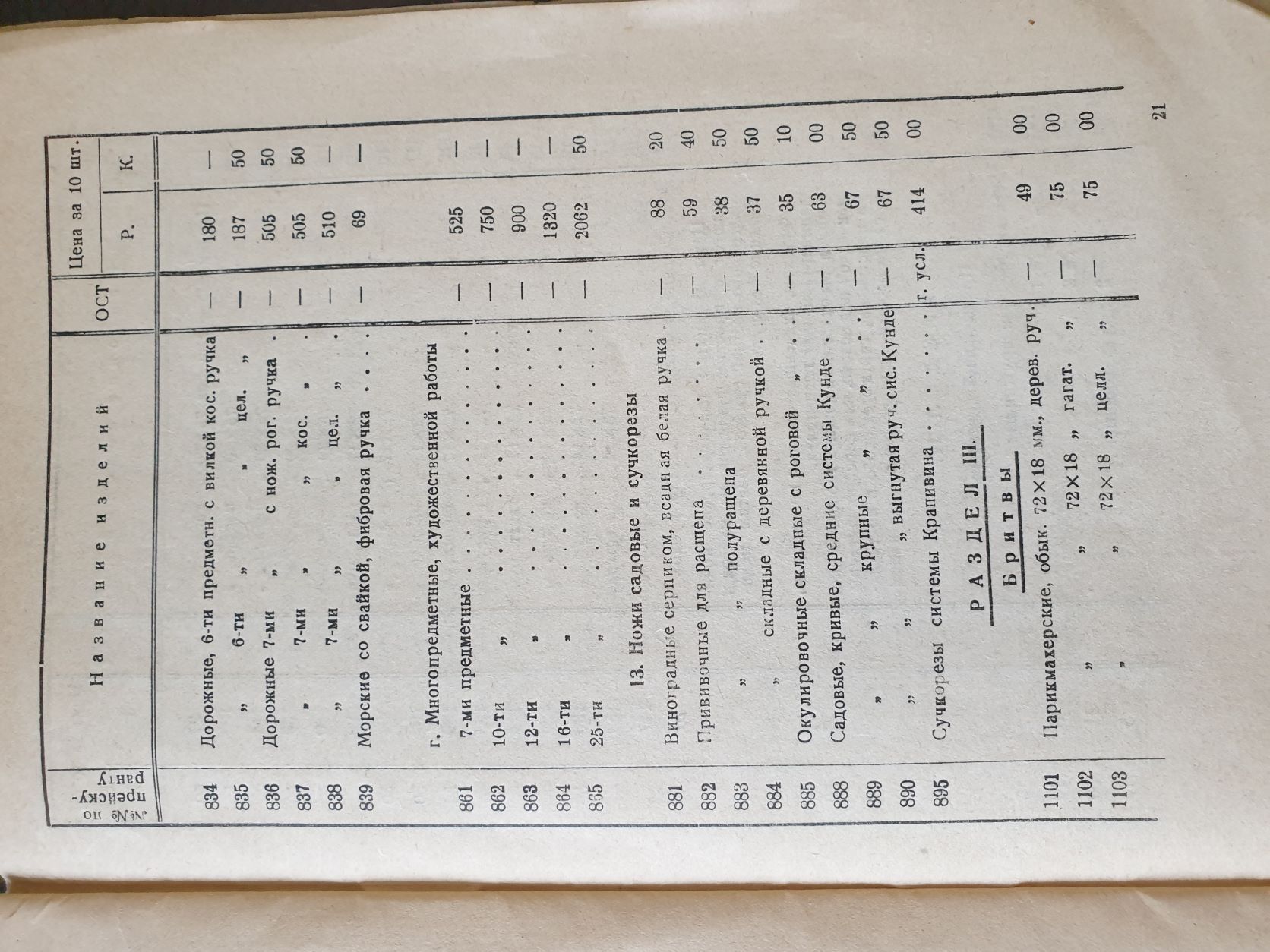 СССР. Народный ком. тяжелой промышленности. Бюро каталогов. Прейс-курант ножево-инструментальных изделий номенклатуры ширпотреба [Текст] : Бюро каталогов НКТП СССР / Упр. Уполномоченного НКТП СССР при СНК РСФСР. Республиканский трест инструментальной пром-сти Росинструмент. - Москва ; Ленинград : Госмашметиздат, 1933 ([М.] : типо-лит. им. Воровского). - 23 с. : ил.; 15х23 см. https://viewer.rsl.ru/ru/rsl01009344263 ... heme=white