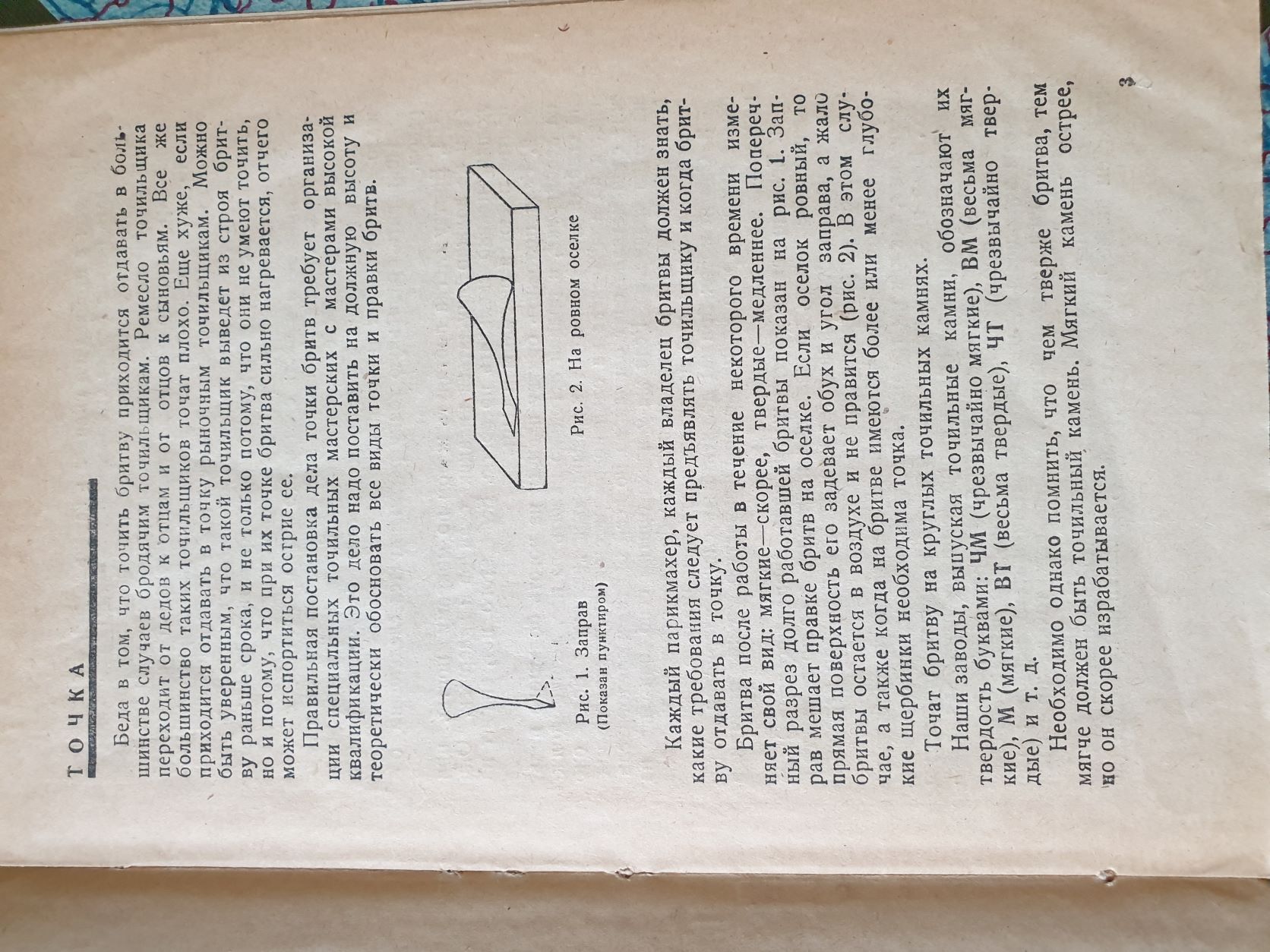 Точка и правка бритв [Текст] / К. Г. Лазарев ; [Предисл.: Нисский]. - [Москва] : Коиз, 1933 (21 тип. "Мособлполиграф"). - 12 с., без тит. л., [2] с. на обл. : черт.; 22х15 см. Мое понимание терминологии этой книги (с сегодняшних позиций): точение (точка, заточка) в этой книжке - это нечто вроде современного регринда, т.к. четко указано что точка делается "на круглых абразивных камнях разных диаметров" и делают ее точильщики. Правка (направка) - это в современном смысле заточка. Мастика - это сейчас полировальная паста.