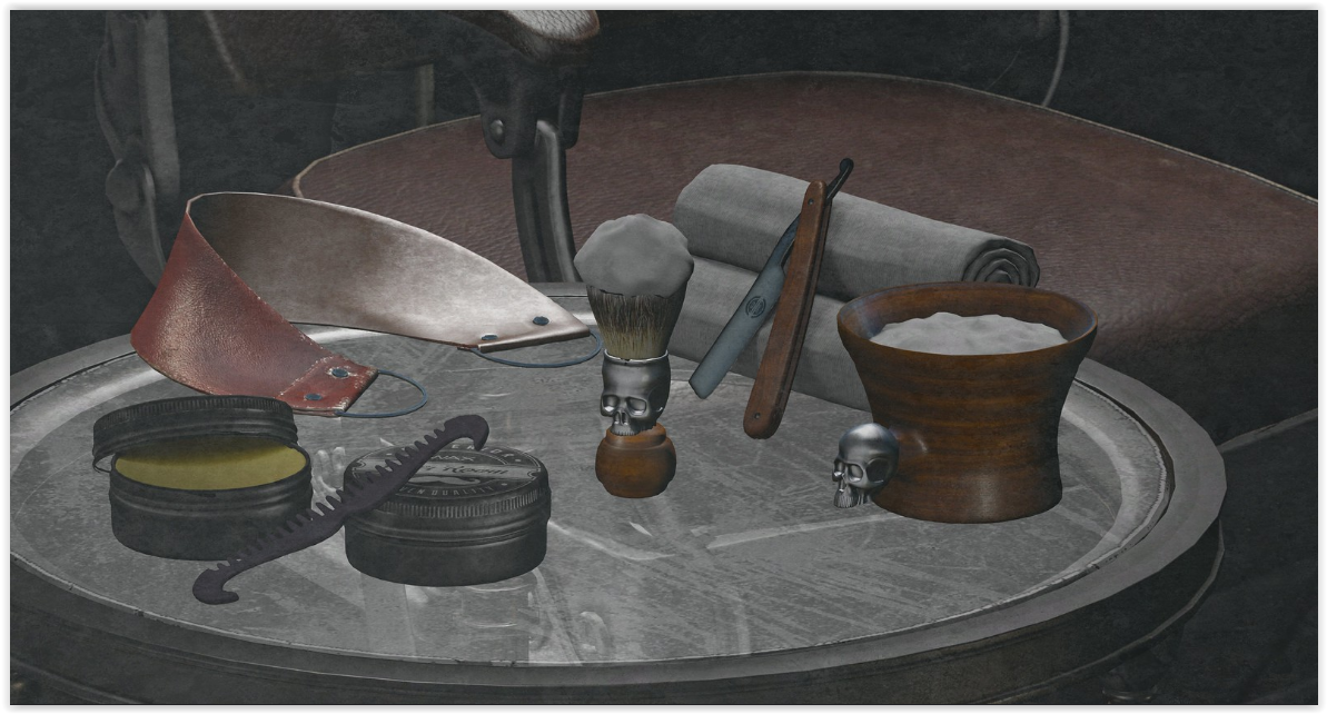 “In the Barber Shop” „В цирюльне” Взглянем поближе: С 2013 г. с кайфом бреюсь опасной бритвой пять раз в неделю, в три прохода.