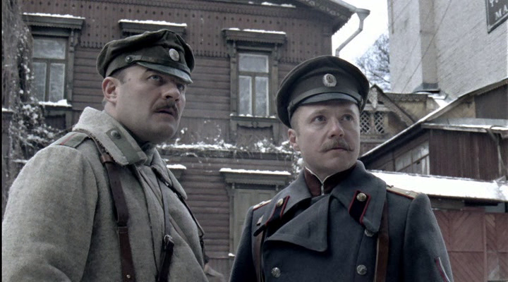 А вот один из моих любимых кинофильмов, по мотивам булгаковского творчества- "Белая гвардия". На Андреевском цирюльник предлагает господам офицерам посетить их барбершоп и избавиться от уставных усов, которые непременно выдали бы белую кость входящим в город петлюровцам. На заднем плане цирюльник орудует опасной бритвой над физиономией ещё одного офицера. Горячий Мышлаевский (Пореченков) порывается к наглецу, но более спокойный и рассудительный Степанов (Стычкин) сдерживает его со словами: "А что? Погоны мы хочешь-не хочешь снимем. Равно как и кокарды. А без погон да в усах- это, брат, как без порток да в кивере. Брей!" Волхвы не боятся могучих владык,