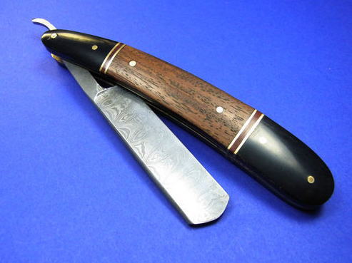Rasiermesser Damast ,Griff aus Büffelhorn und Spezialholz.