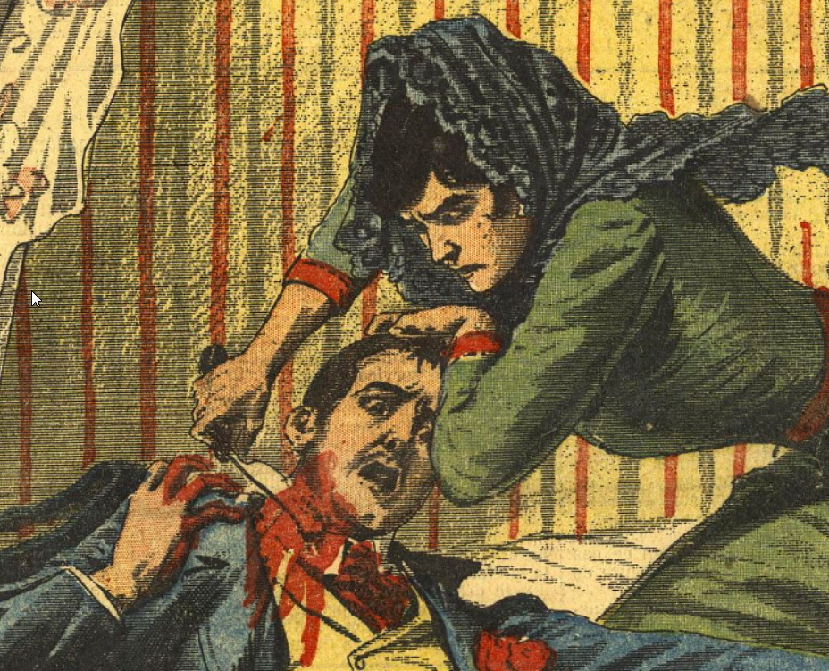 Иллюстрация Рауля Томена из журнала „L'Oeil de la Police”, №3, 1908 года „De l'amour et du sang. Drame de la jalousie” „Любовь и кровь. Драма ревности” Взглянем поближе: С 2013 г. с кайфом бреюсь опасной бритвой пять раз в неделю, в три прохода.