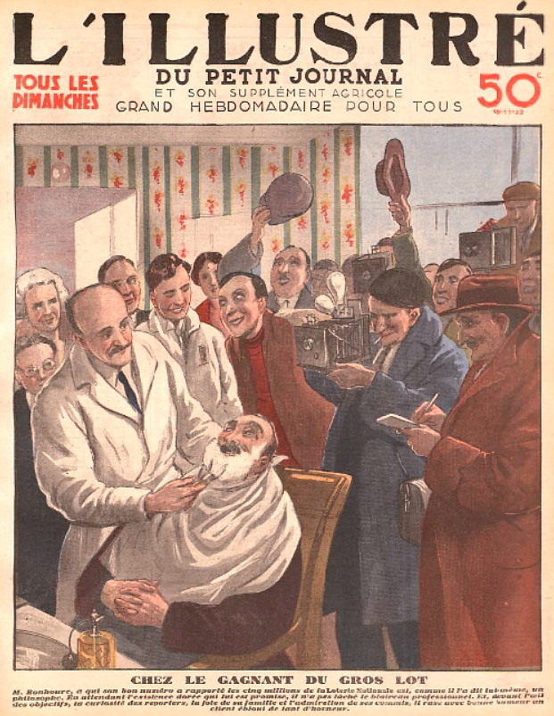 „Chez le gagnant du gros lot” „У выигравшего джекпот” (Он выиграл джекпот национальной лотереи размером в пять миллионов). Здесь бритвы не видно, но зато, в предыдущей картине бритв было две С 2013 г. с кайфом бреюсь опасной бритвой пять раз в неделю, в три прохода.