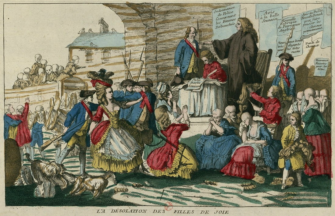 „La Dеsolation des Filles de Joies” „Опустошение дочерей радости”, около 1780 г. (Проститутки, арестованные и с побритыми головами во время правления Людовика XVI в Париже). Цирюльник с бритвой: Та же гравюра встречается перевернутой на 180 градусов и в таком исполнении: Цирюльник с бритвой: С 2013 г. с кайфом бреюсь опасной бритвой пять раз в неделю, в три прохода.