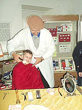 На отдельном стенде – опасные бритвы Европы и Юго-Восточной Азии. Они отличаются расположением лезвий. Так, у азиатов разложенная бритва образует полукруг – удобнее самостоятельно брить голову. Из истории известно, что в Англии даже изобрели автоматизированную бритвенную систему, за считанные минуты способную обслужить с десяток мужчин. Посетители давили на педаль, приводя в движение сложный механизм: одна конструкция намыливала лицо, вторая брила, параллельно обдавая клиента паром. Но опыт оказался неудачен, машина не могла приспособиться под особенности лица, и англичане шли домой с глубокими порезами.