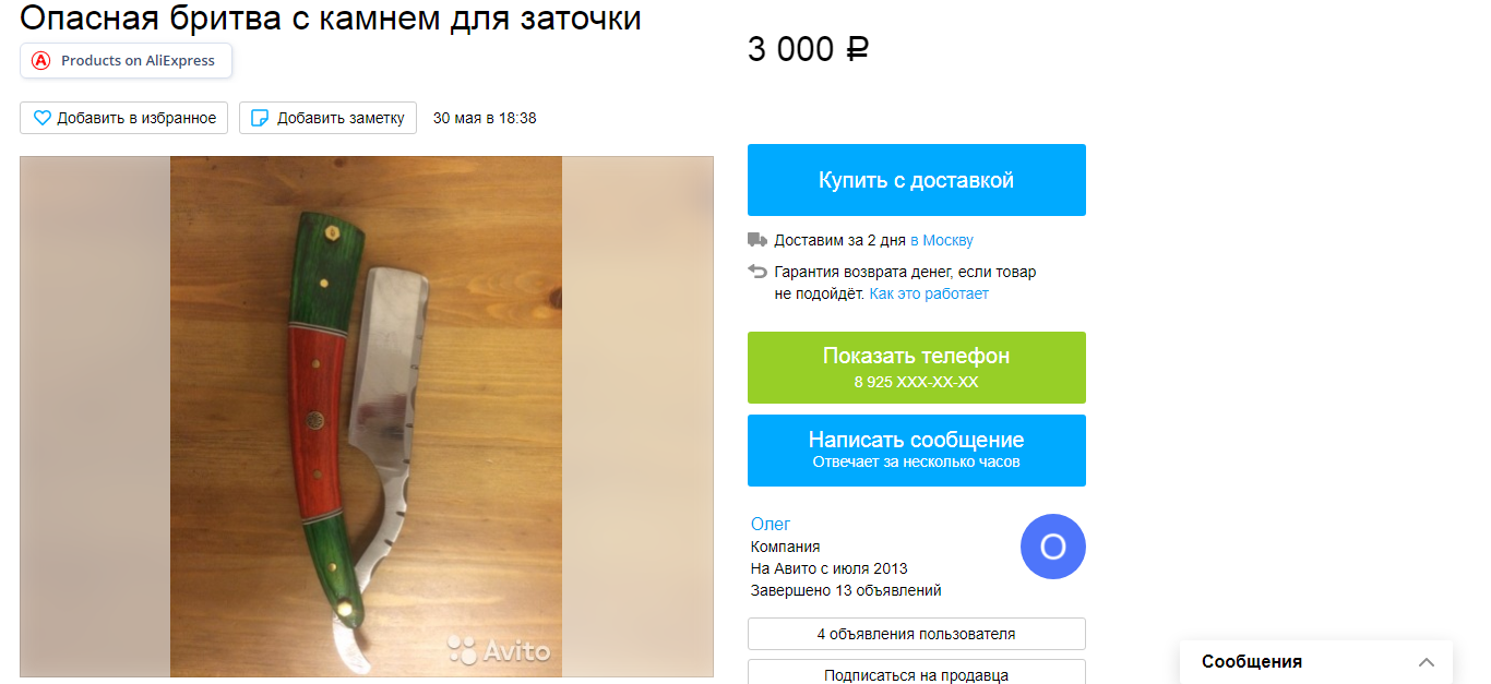 - Ремонт опасных бритв, звонить с 11-00 до 23-00, +79267729357, спросить Олега.