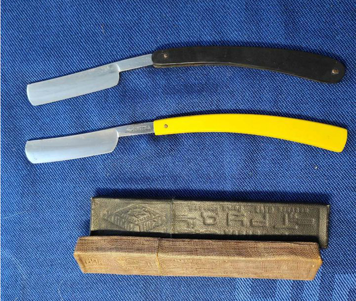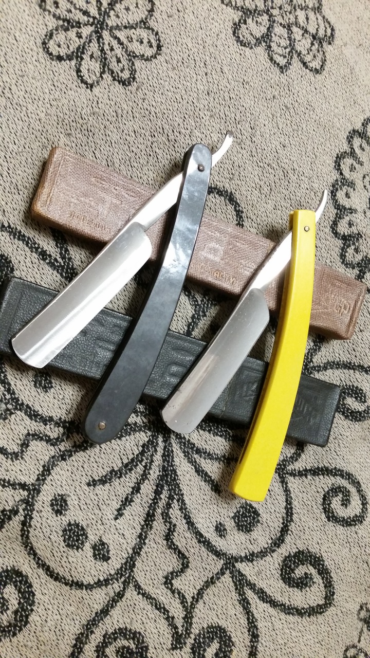 К вопросу о цветных ручках на Росинструментах - выше была выложена бритва с белой ручкой, тут народ сомневался, а были ли такие. Широко известны такие с оранжевыми полупрозрачными ручками с узорами, у меня есть такая, ранее 606 так же выкладывал свою такую, но фиолетовую. А мне вот скоро должна придти подобная, но с желтой не прозрачной ручкой, без каких то узоров. На фото плохо видно, но кажись она однопиновая. Вторая бритва с фото тоже придет, тоже видимо РИ, но с более традиционной ручкой