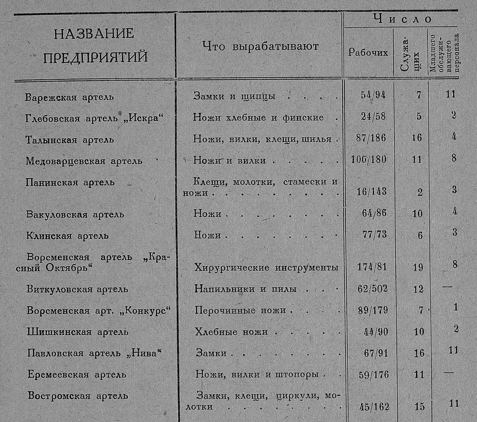 - Таремская артель Ножи, замки, бритвы, коловороты, весов, коромысла