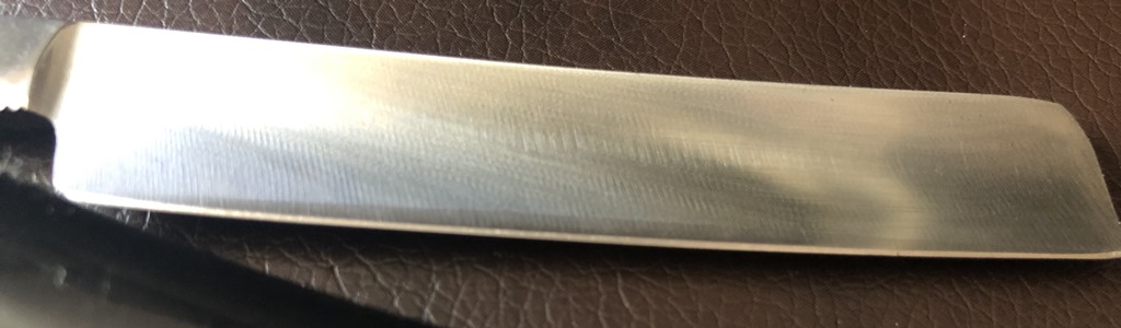 За 9 лет увлечения бритвами, эта вторая бритва, которая попалась мне в руки. При анализе первой,я подумал, что бритва была подвержена регринду и другим работам, так как я знаю вачскую "ВЕСНУ" в полном размере,а вот более миниатюрного варианта никогда не видел. Но тут раскопал совершенно нетронутый экземпляр, с заводской заточкой, следами от электро-химической заточки и нанесённым антикоррозийным покрытием и понимаю, что это есть оригинальная модель.Тут, при ширине полотна в 15 мм,толщина обушка всего-3.5 мм.