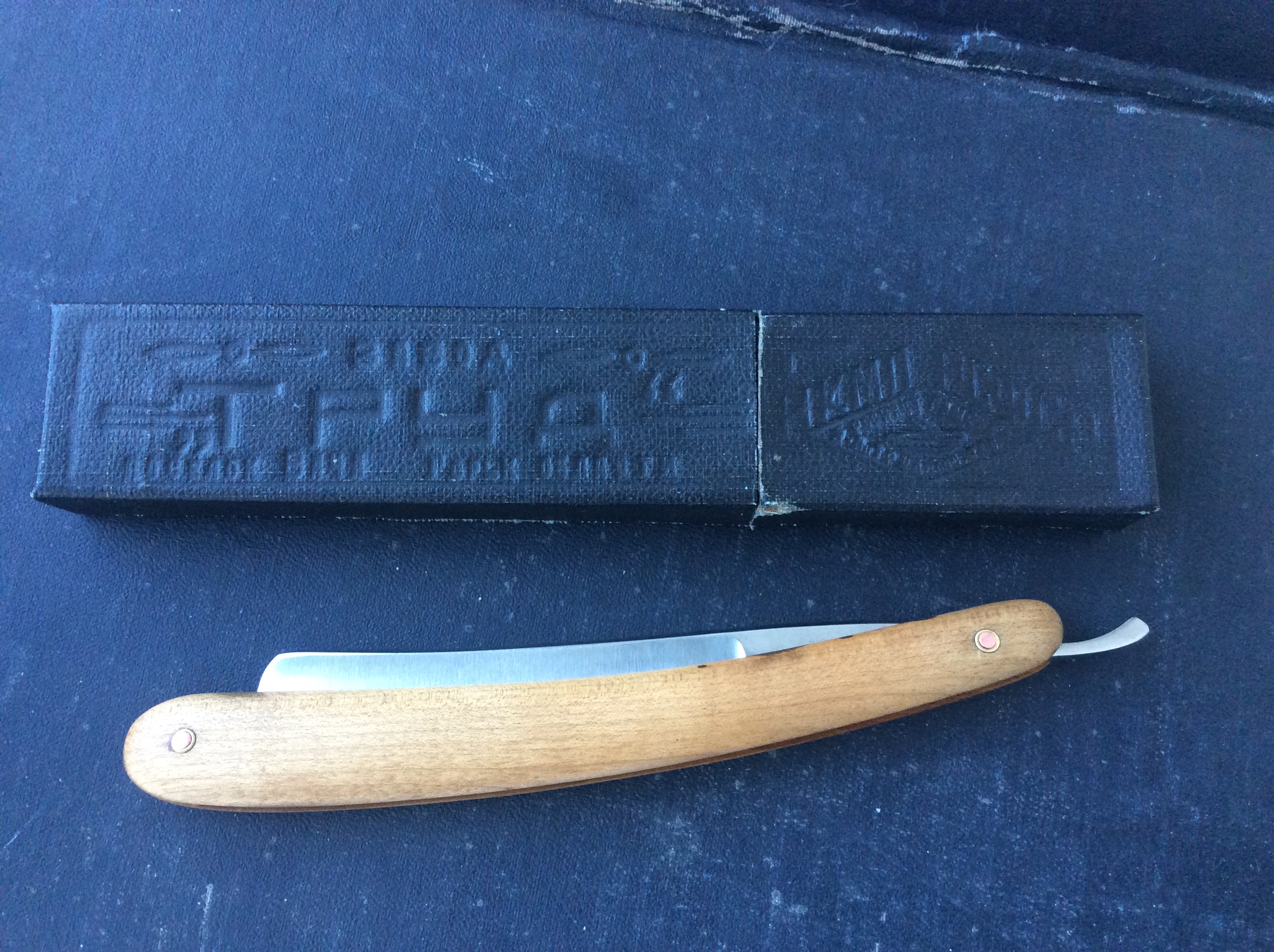 по виду бритва довоенная. До войны Таремский промколхоз делал травление на свои бритвы. Теоретически никто не мешал и на Ваче наладить такое. По клейму бритва 100% после 1938 года, однако там в обязательном порядке должна быть указана отраслевая принадлежность плюс производственная марка (причем с марта 1936 года). Может первые послевоенные? Типа спецзаказ для спецторгов, как и "Москва" на СТИЗе....