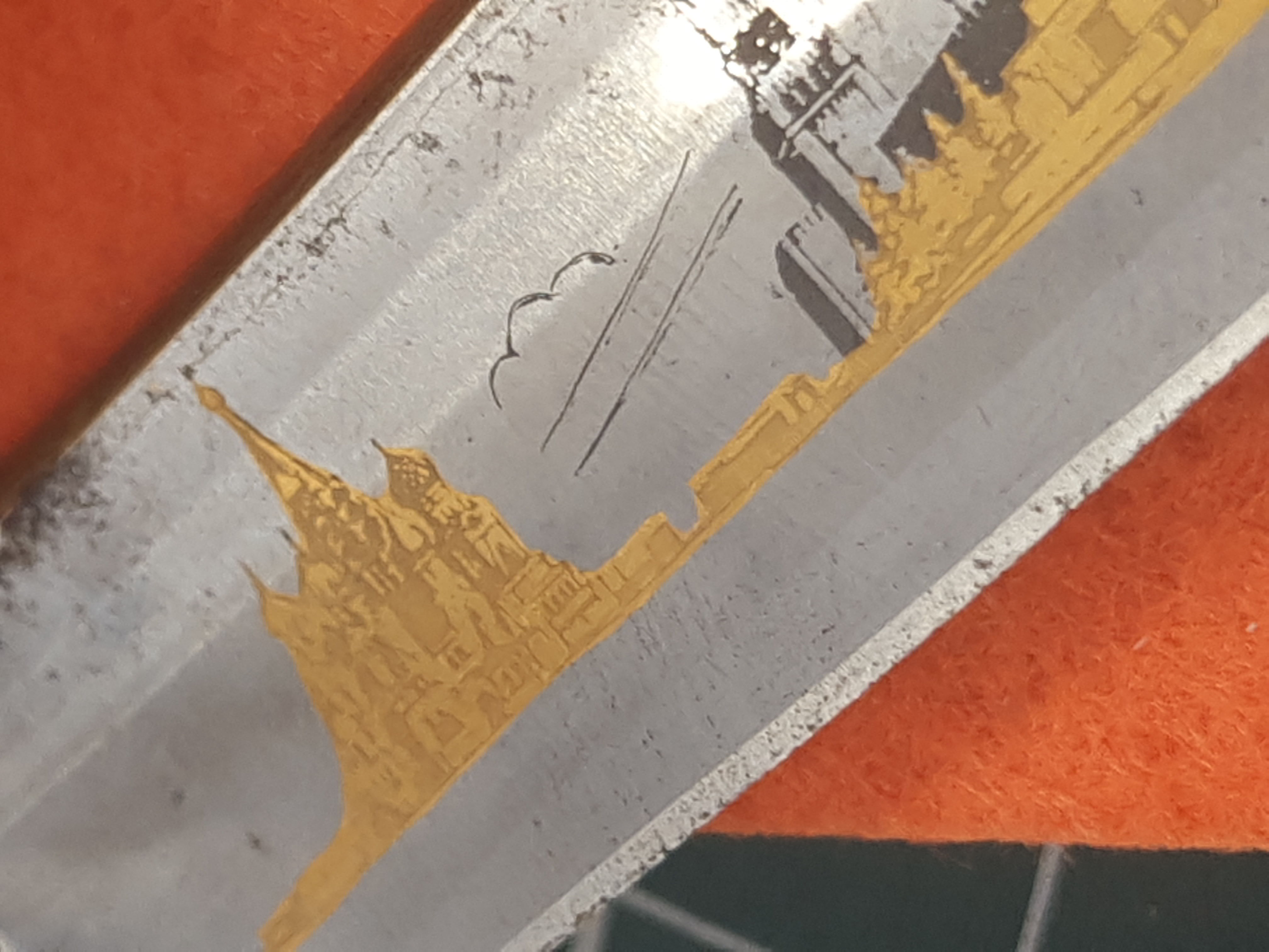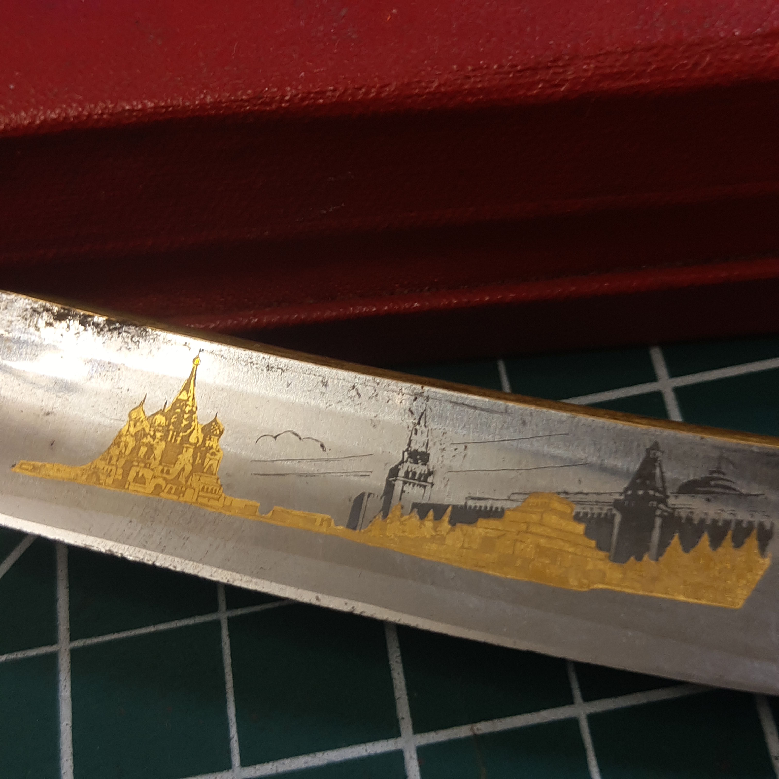 Да видно,что там все заводское.Нормальное заводское состояние.Хорошо,что еще нет грубых следов от камней на обушке.А вот кто нибудь скажет,в чем принципиальная разница между разного рода такими Подарками и Гравюрами,а те в свою очередь чем отличаются от обычных вачских Волг,Яхт,Экстр и т.д.?Да по моему ничем они не отличаются,как по качеству стали,так и по форме клинков и геометрии.Все те же яйца,только вид сбоку.