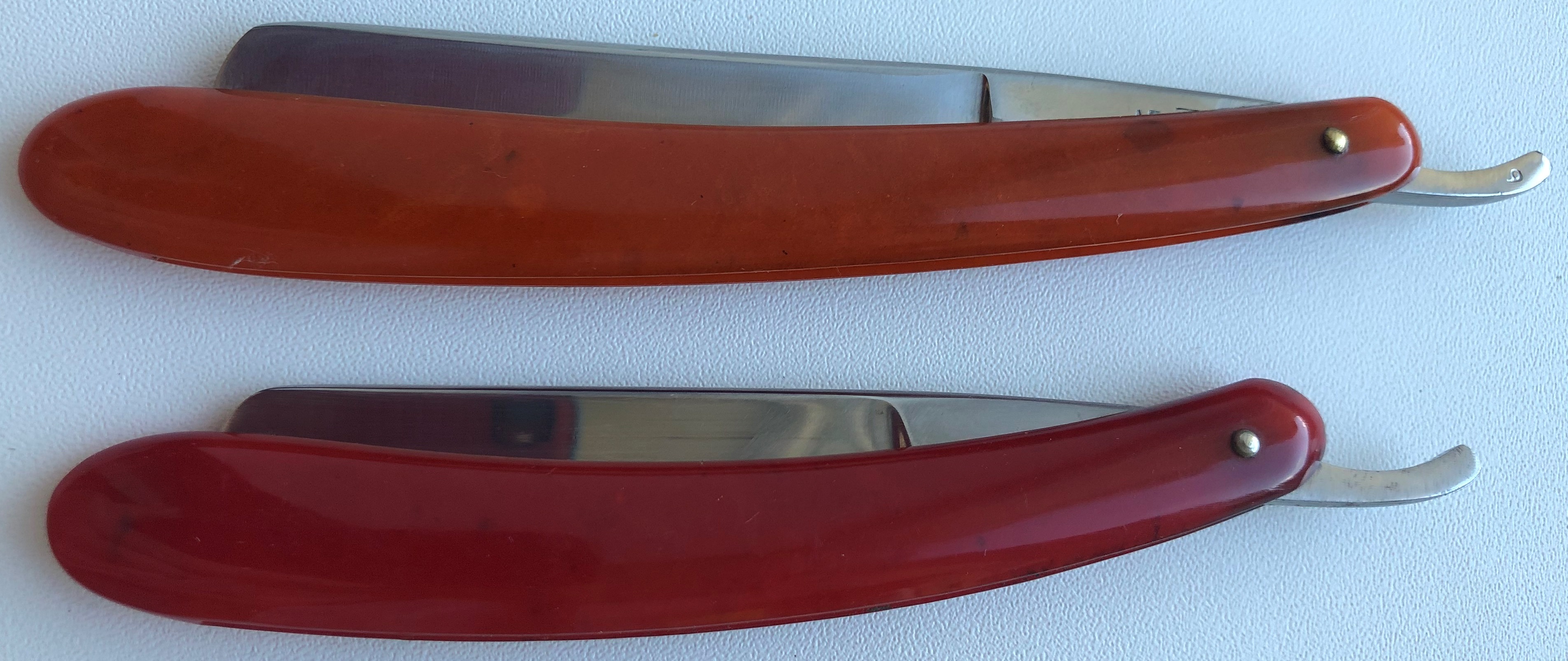 Из всех бритв что у меня есть в фаворите экстра 52 года, ручку повело, не закрывается, вернее закрывается но на РК, пробовал в кипятке ее выровнять, но чего-то не получилось, ну не в этом суть, так как она заточилась и бреет, из моей коллекции ни одна так шикарно не бреет, ну хотя freidr ещё может посоперничать с ней, но ее не юзаю, раритет, по клейму вроде около 200 лет бритве. Сейчас ещё жду и француженку с молотка, на нее надежда. Кстати, есть ещё экстра 62 года, бреет хуже, точил одинаково.