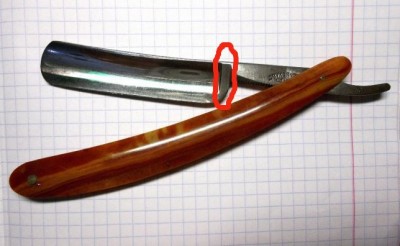 для двухзаковных характерна эдакая двухступенчатость в области перехода от эрля на полотно, сзади пятки. Они более стойкие в заточке, но и более жесткие в бритье. Вот, например: