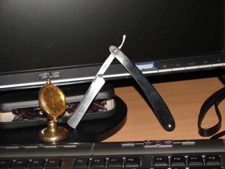 ручку менял даритель, он же восстанавливал и точил бритву. волос рубит уверенно в 1,5 см от пальцев