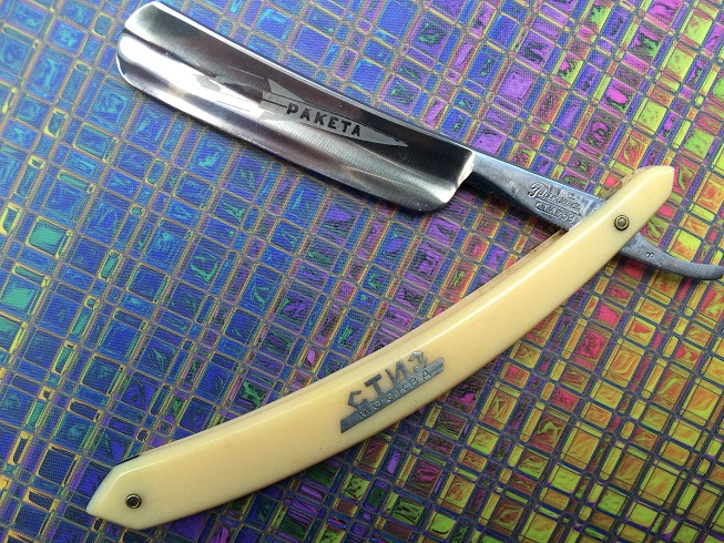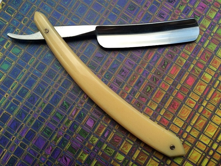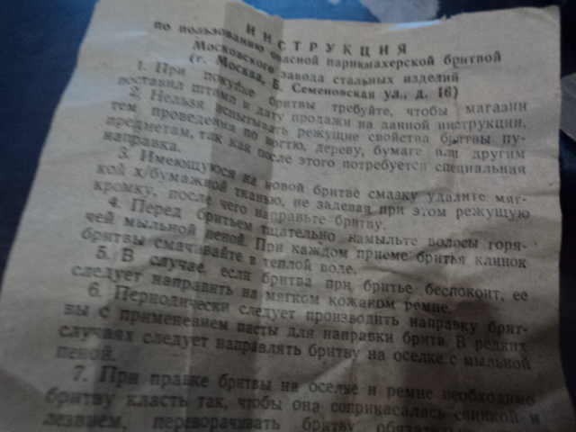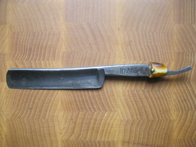 Уточили, причём по-варварски: бритва, судя по обуху, была улыбчивой, а режущая кромка уже прямая. Хотя... не разобрал, какой там год указан — 54-й, что ли? улыбчивых бритв тех времён что-то не припоминаю.
