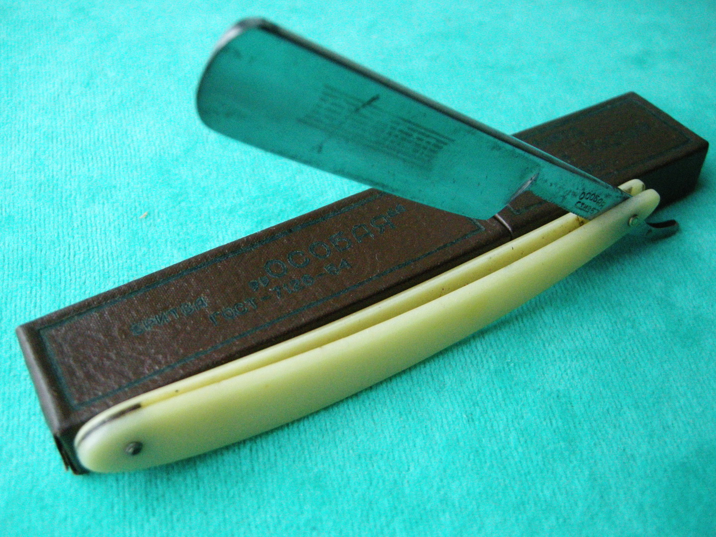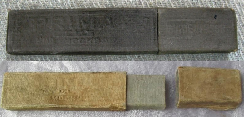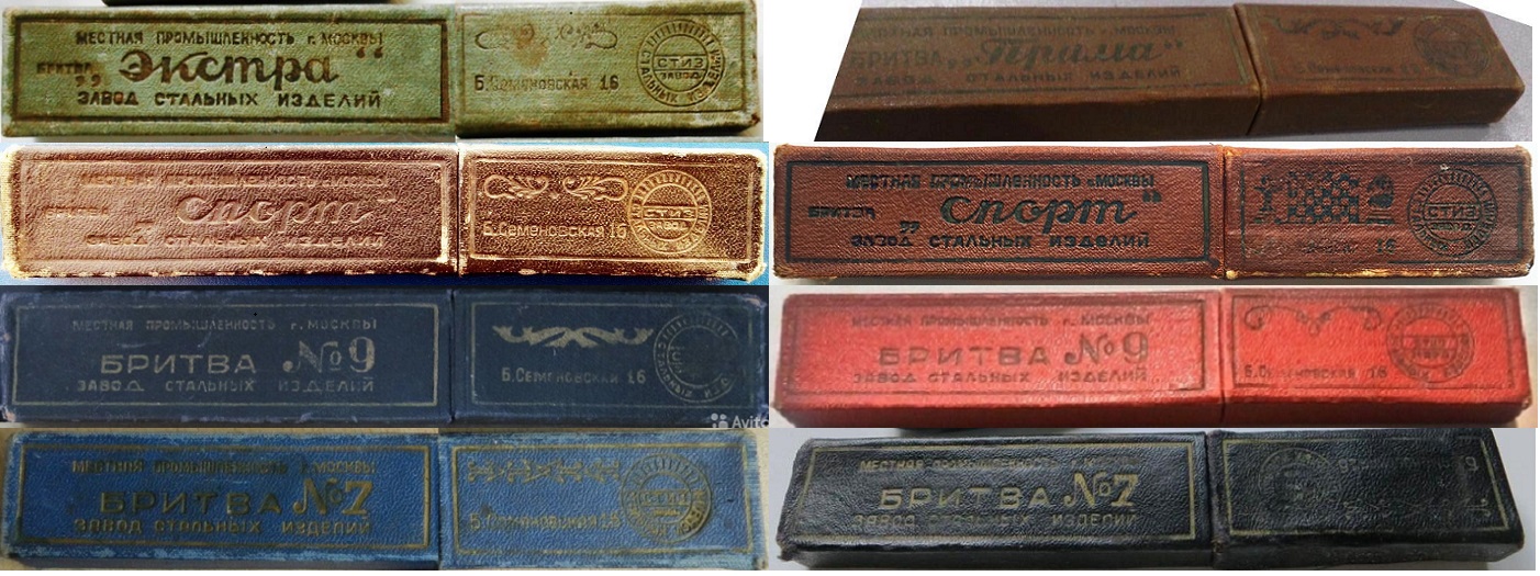Коробочки выпускались двух видов. Дорогая, подарочная, только для бритвы "Москва" и обычный пенал для всех остальных.