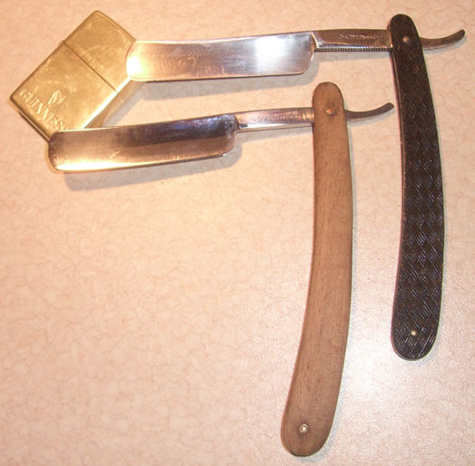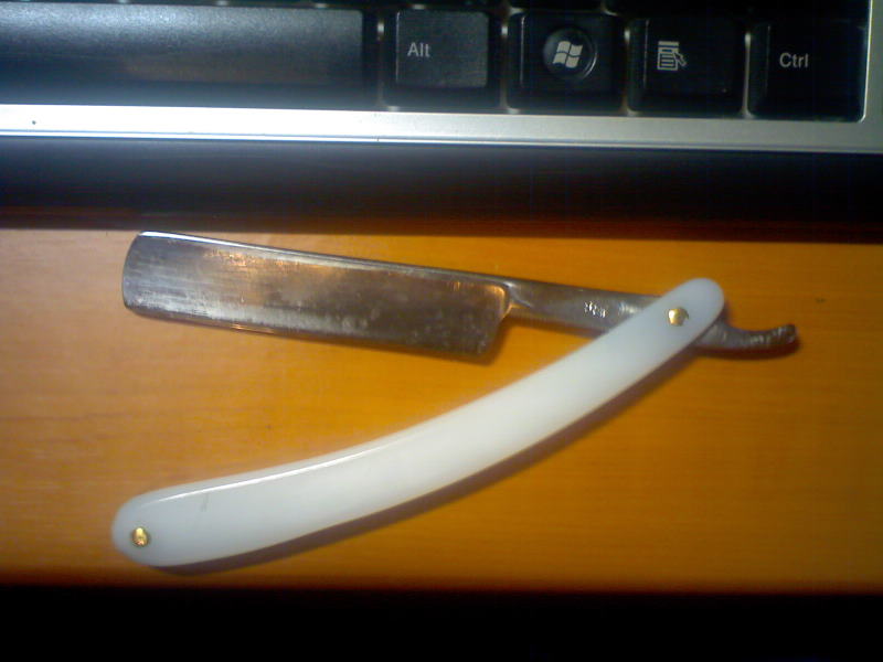 Добро. Завтра вечером сгоняю, если не перехватили, ещё раз осмотрю и возьму. Там в общей сложности сегодня 5 шт. было (разные: Вача, "Hollow Ground. Made in Germany" - эта была без клейма на лезвии. Интерестно, какая фирма? Была надпись на ручке, но стёрлась). Все спишу, дам знать.
