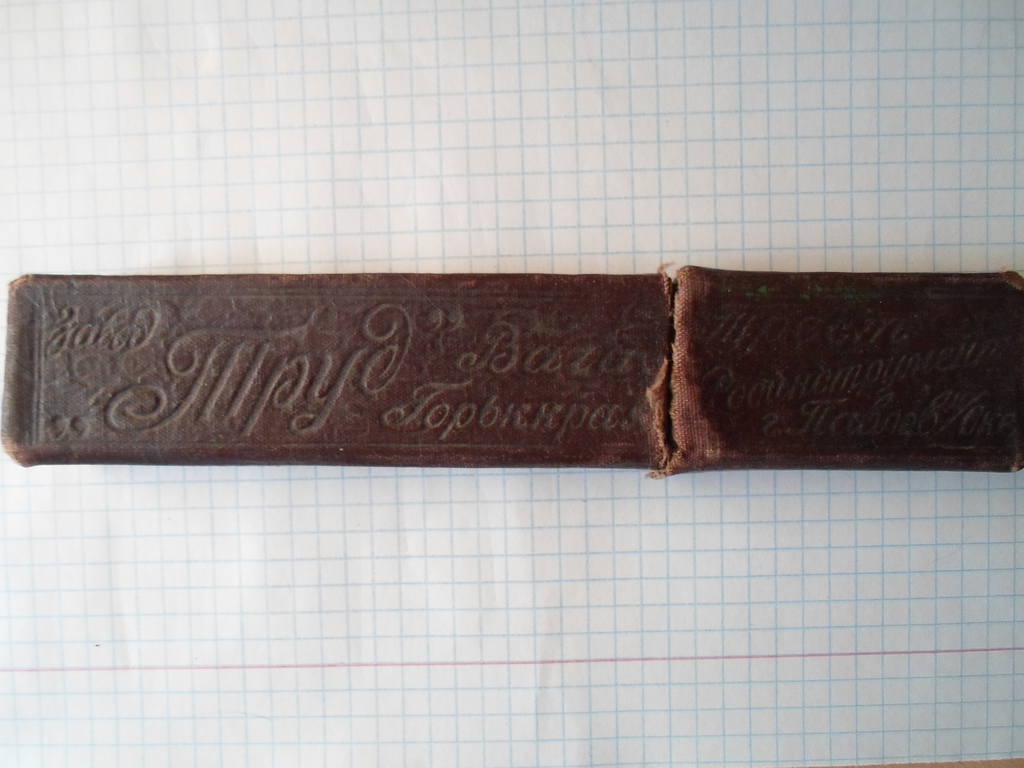 Жаль футляр не сфотографировал - буквы ТРУД не мелко, а во всю ширину футляра..