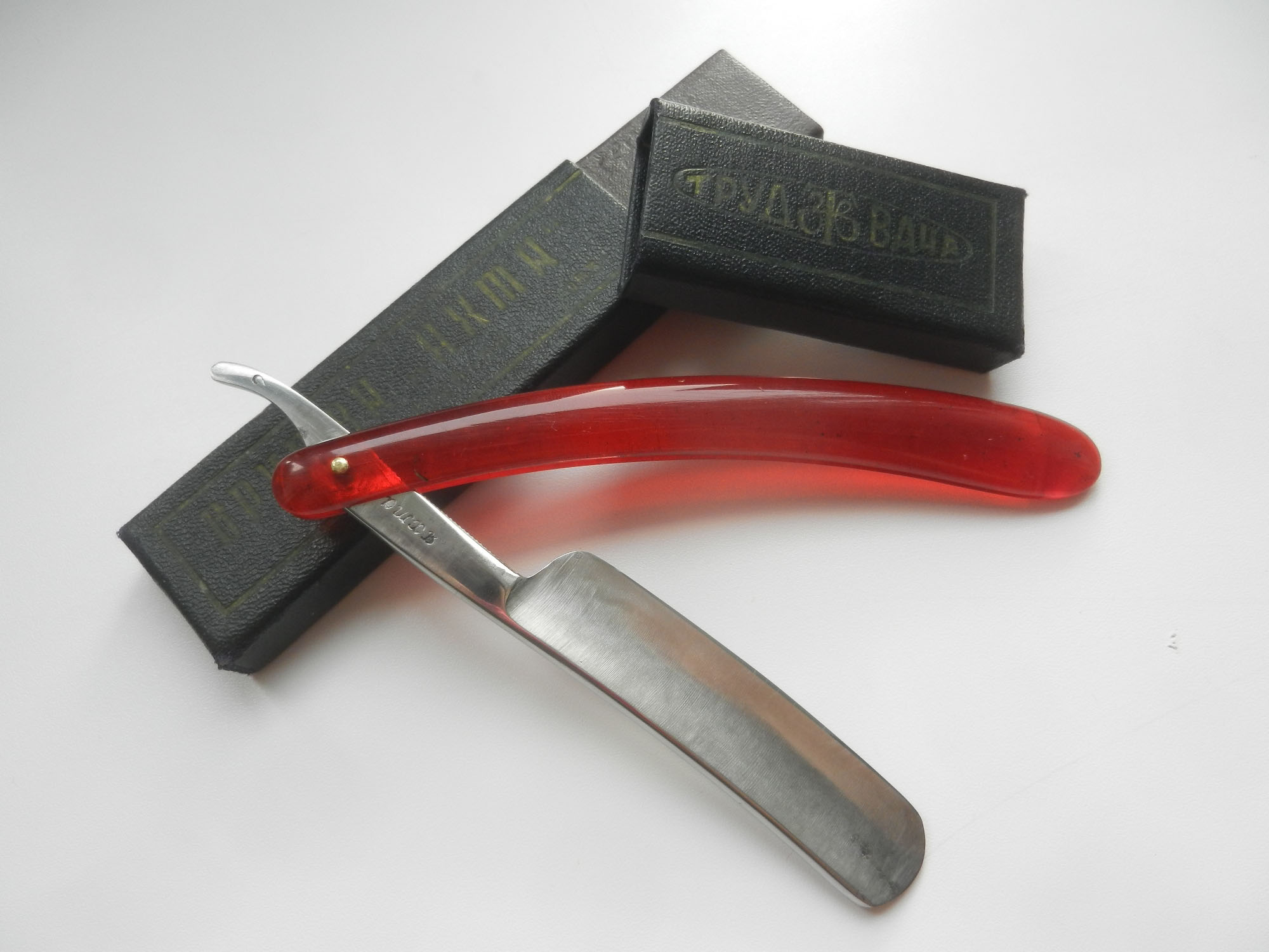 Дальнейшую историю завода "Труд" мы намеренно опускаем, так как производство опасных бритв после 1968 года было прекращено.