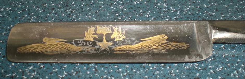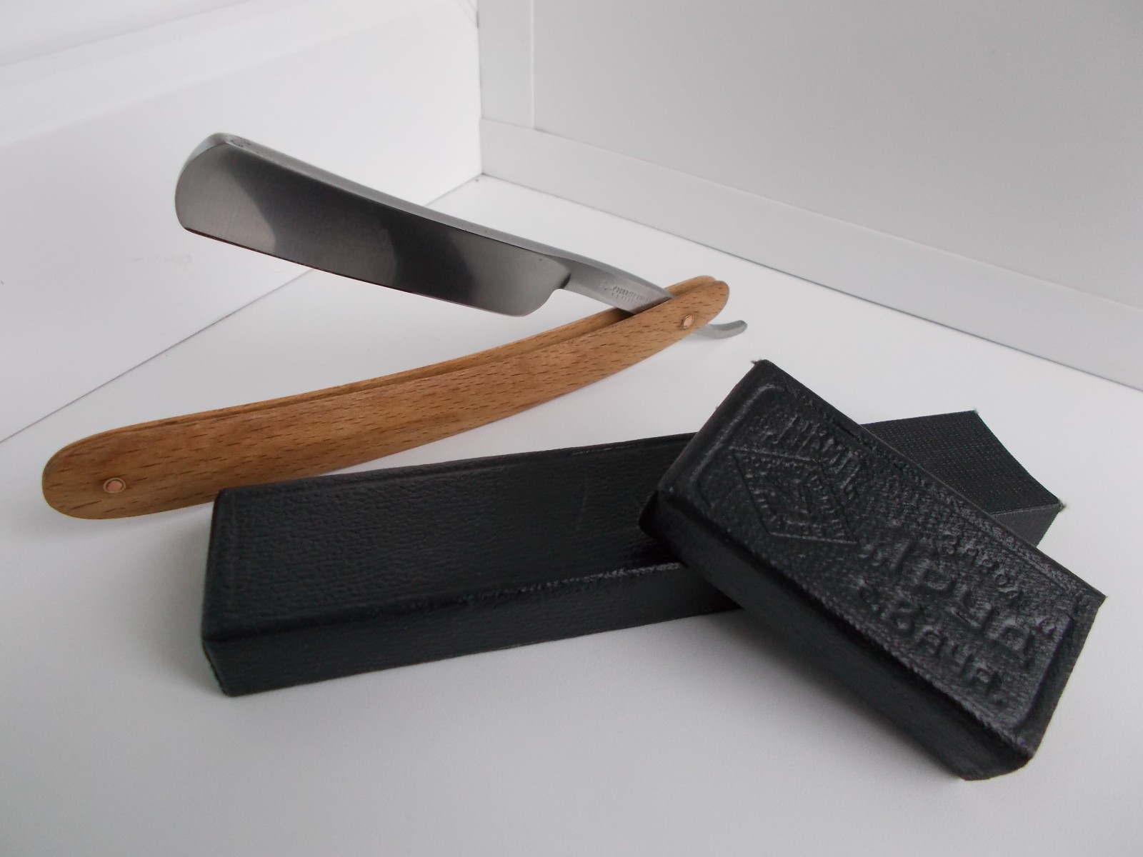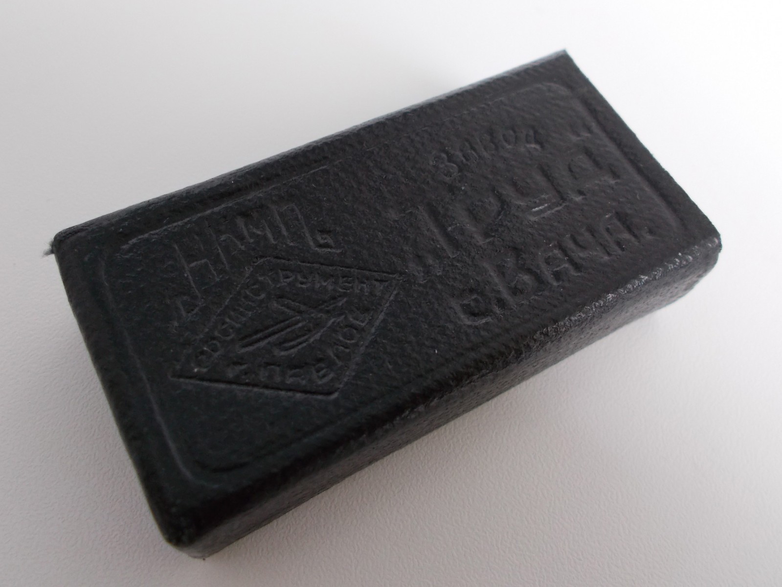 Вторая бритва в знакомой коробке г.Павлов на Оке, Горьковского края. Бритва вероятно номер 1102 из того же альбома. Незнаком для меня материал ручки. Чёрный, достаточно твёрдый материал, не уверен, что карболит.