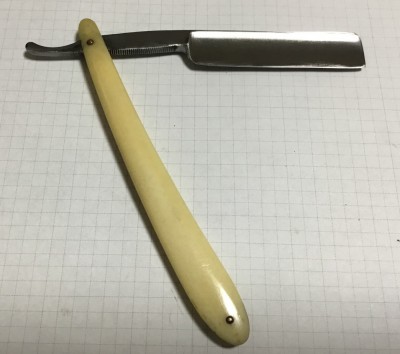 Пожалуй из советских бритв это самая качественная (из того что я встречал). Металл - сказка, ручка - кость. Пины - медь. На другой стороне шейки надпись №17, на кончике хвостовила надпись 1С. Качество бритвы вызывает уважение к девайсу. Ничего общего с советским "дубовым" производством. Ремонт опасных бритв, звонить с 11-00 до 23-00, +79267729357, (whats app, telegram, VK), спросить Олега.