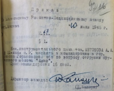 Как видно из документа, в июле месяце производство всей продукции остановилось. Завод расформировали, все станки распределили и отправили по разным РПЗ страны. Кому-то достался и молот Аякс.... а в 1947 году завод возродили вновь, но на другой территории и с другими станками. НКСМ МРПЗЕще немного истории