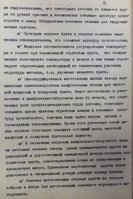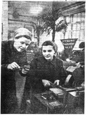 В эти дни во всех цехах завода идет социалистическое соревнование в честь выборов в местные Советы. Завод завершил годовую программу и выпускает продукцию в счет 1951 года.