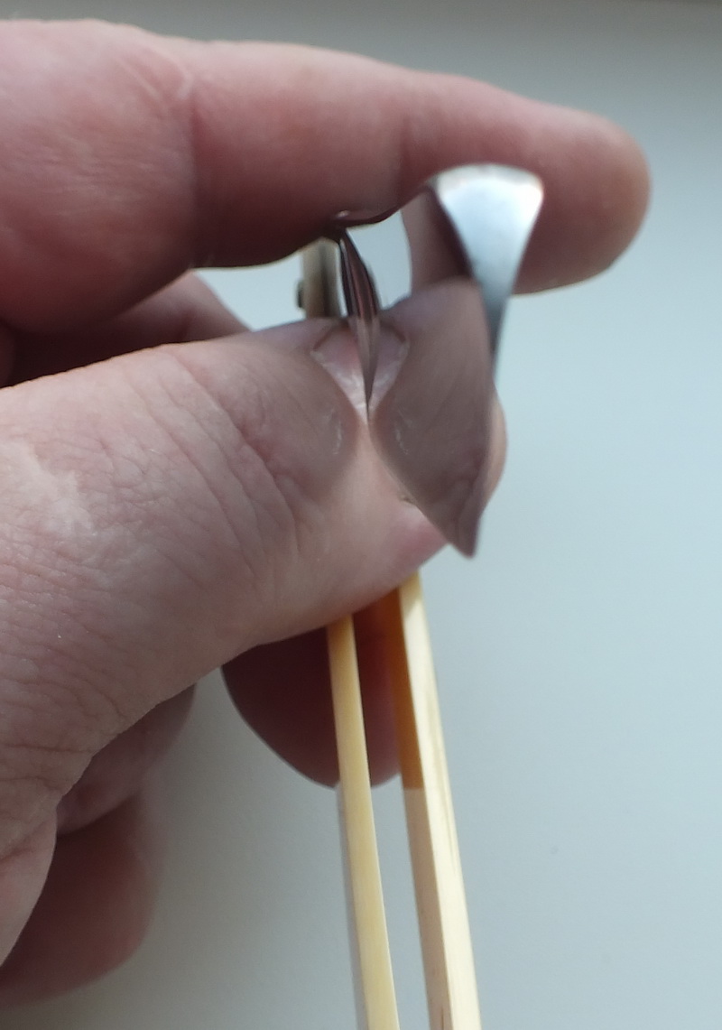 Оправа пластик. Клинок 3/8, вогнутость почти клин, размер 135х12,5х3,8 мм.