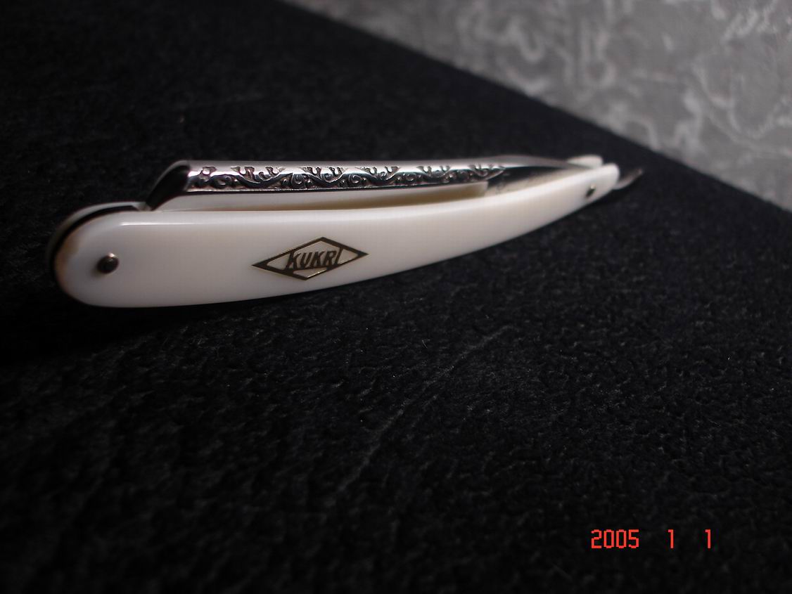 Скорее всего бритва в пользовании не была ,заводская шлифовка , бритва была разобрана , отполирована , ручка восстановлена , дополнил конструкцию шайбочками на осевом пине , что бы избежать трения ручки о полотно бритвы .