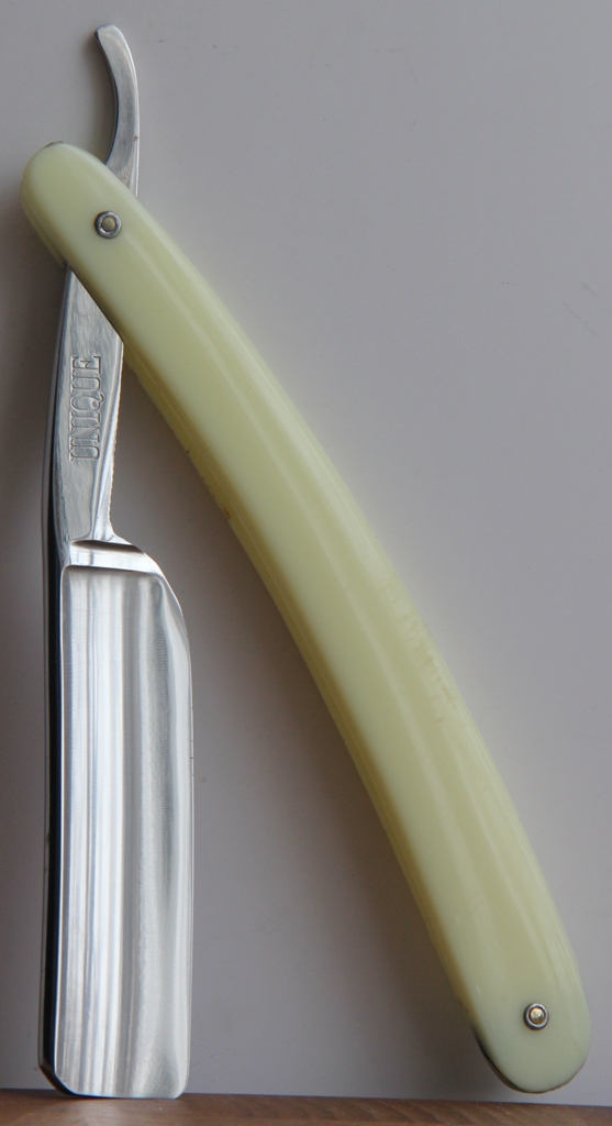 Ширина полотна-20-17 мм Толщина обушка-5.5 мм Бритва пришла в совершенно не пользованном состоянии: ничего не снималось, не ремонтировалось. всё родное. Немного освежил металл и усё.Оправа-натуральный рог, сталь-углеродка-без каких либо дефектов. Бритва заточена впервые и готова к бритью. Сталь достаточно мягкая, что придаёт комфорт и мягкость при бритье. Цена -ПРОДАНА160$ с доставкой. Spoiler Show