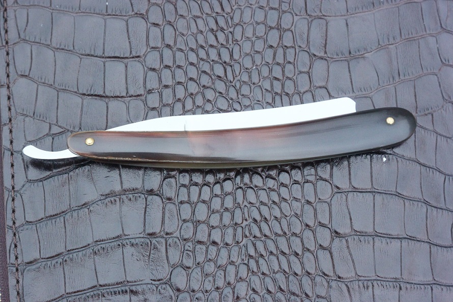 Re: Продаётся от KarangiWade and Butcher. Старая бритва. 5\8 На ерле присутствуют небольшие следы времени, при профилактики которых надпись стала просматриваться с трудом. Но, как писал форумчанин -"От этого он СтИзом не стал". Ручка рог в прекраснейшем состоянии. Интересная геометрия. Мощный обух (6 мм). Возле головы с лицевой стороны слегка неравномерная кромка (чуть шире). Бритва до заточки по всей видимости в использовании не была! Замечательный рез волоса. Заточка N*X*S. Продана