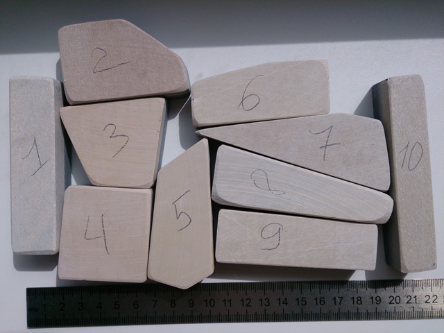 Отсюда и вопрос: что было бы логичнее - сланец из Англии (у него гритность поменьше, вроде бы логически правильнее ряд получается, если принимать гусевские за 5000-7000 грит), или Гуанси (вроде бы, в моем понимании, с их более высокой гритностью должна получаться более острая кромка)?