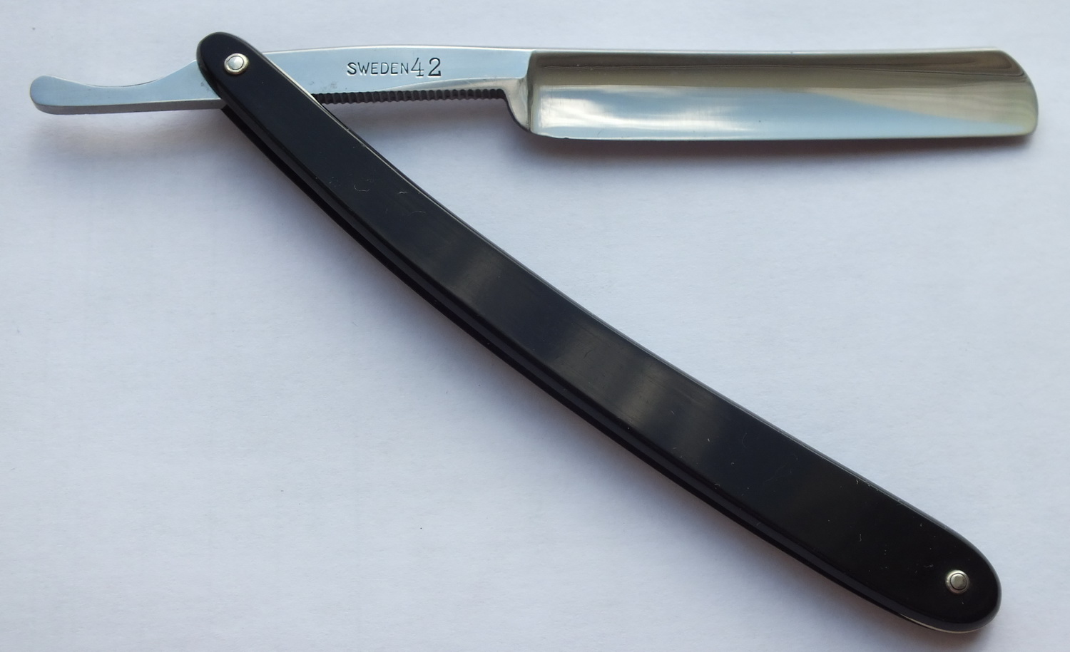 Оправа эбонит. Клинок 5/8 фулл холлоу, размер 142х17,5х4,5 мм. Бритва заточена и готова к бритью. Цена: $110 с доставкой. Spoiler Show