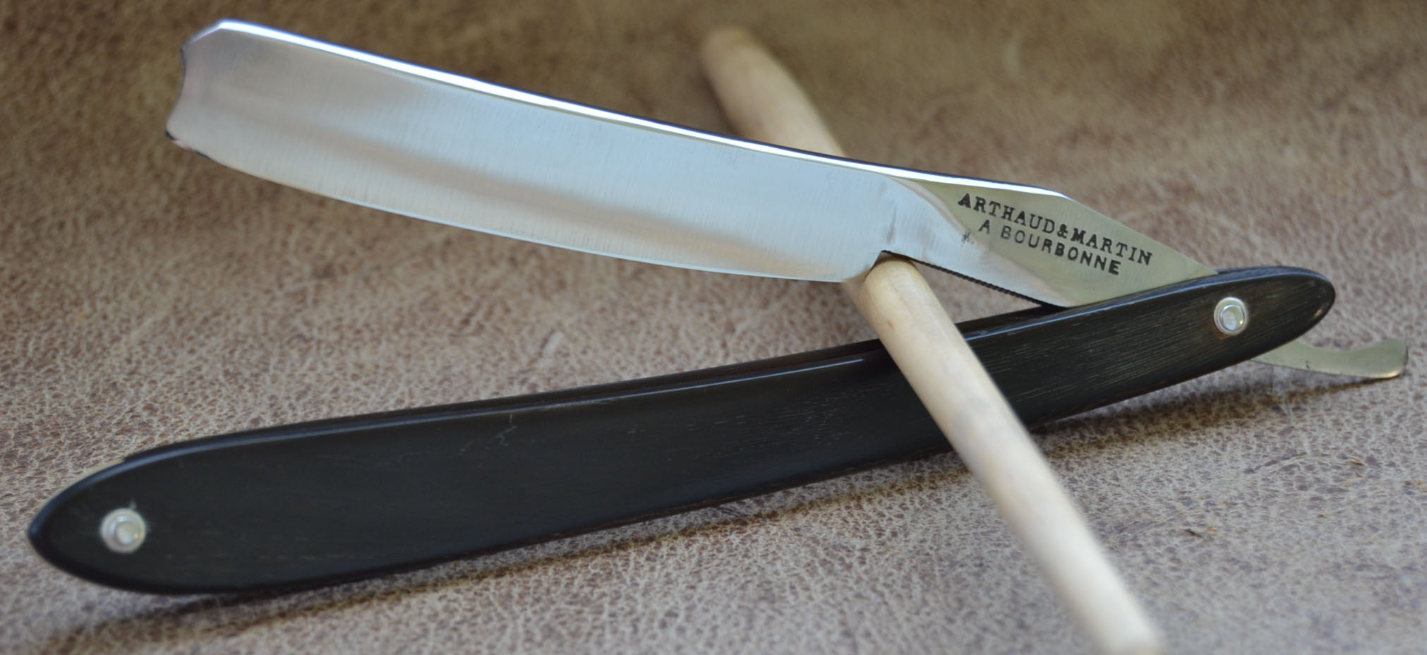 Artaud & Martin a Bourbonne По моему мнению бритву можно датировать серединой 19 века. Продукт небольшого предприятия, расположенного в провинции Бурбонне в центре Франции. Бритва непользованная, заточена мной впервые. Достойный продукт старой Франции. Продано Spoiler Show