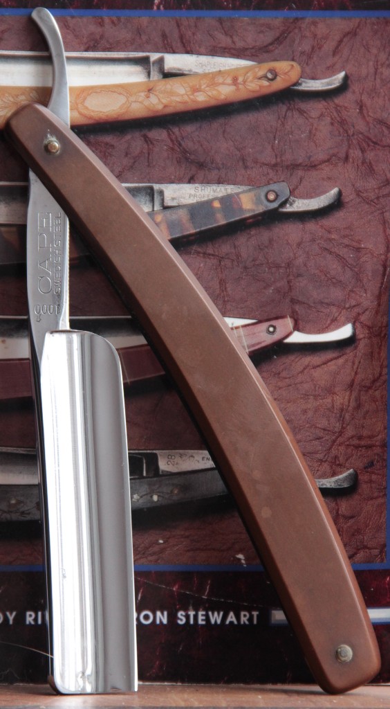 Бритва не разбиралась и не ремонтировалась. Износ обушка минимальный. Бритва тяжёлая. Ручка-пластик. Сталь чистая, за исключением нескольких точек коррозии рядом с кромкой.