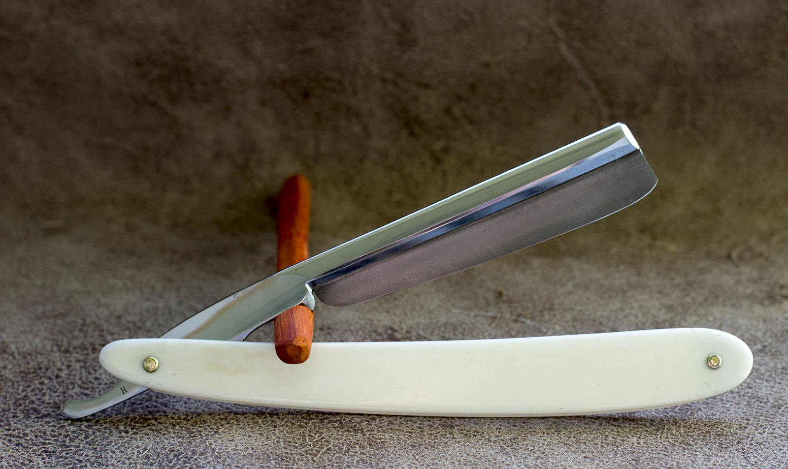 Отличный французский фреймбэк. Ширина немного не дотянула до 6/8, в самом широком месте 18.5 мм. Родная роговая рукоять, с костяным клинышком, бритва заточена и готова к бритью. Продано. Spoiler Show